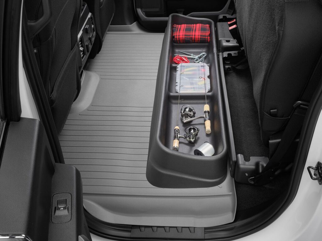 Fabricado con elastómero termoplástico 100% reciclable e inodoro; El sistema de almacenamiento debajo del asiento es duradero y resistente a productos químicos. Diseñado a medida para cada aplicación, el sistema de almacenamiento debajo del asiento se adapta de forma segura a los contornos exactos de cada vehículo y no se agrieta, rompe ni deforma incluso en las temperaturas más extremas.